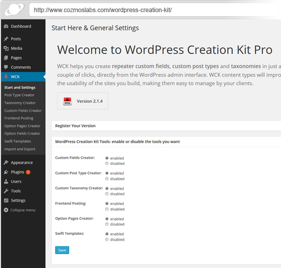 WordPress Creation Kit helps you develop intuitive WordPress sites, easily manageable by your clients and without writing a single line of PHP code.